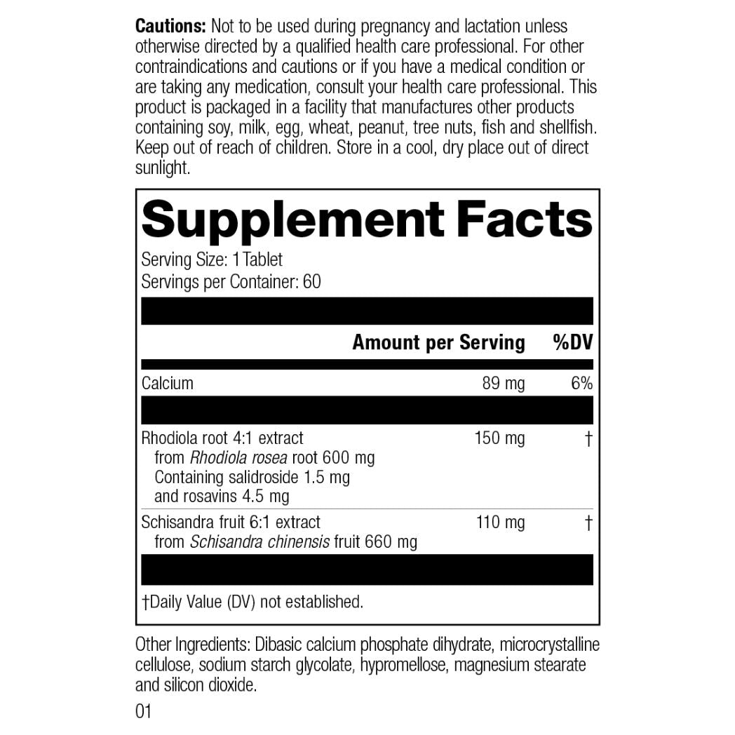 Standard Process Rhodiola & Schisandra is a powerful adaptogenic herbal supplement designed to support your body's natural stress response and enhance stamina, endurance, and vitality. Formulated with Rhodiola root and Schisandra fruit, it helps fortify the nervous system and supports liver function and overall mental performance.