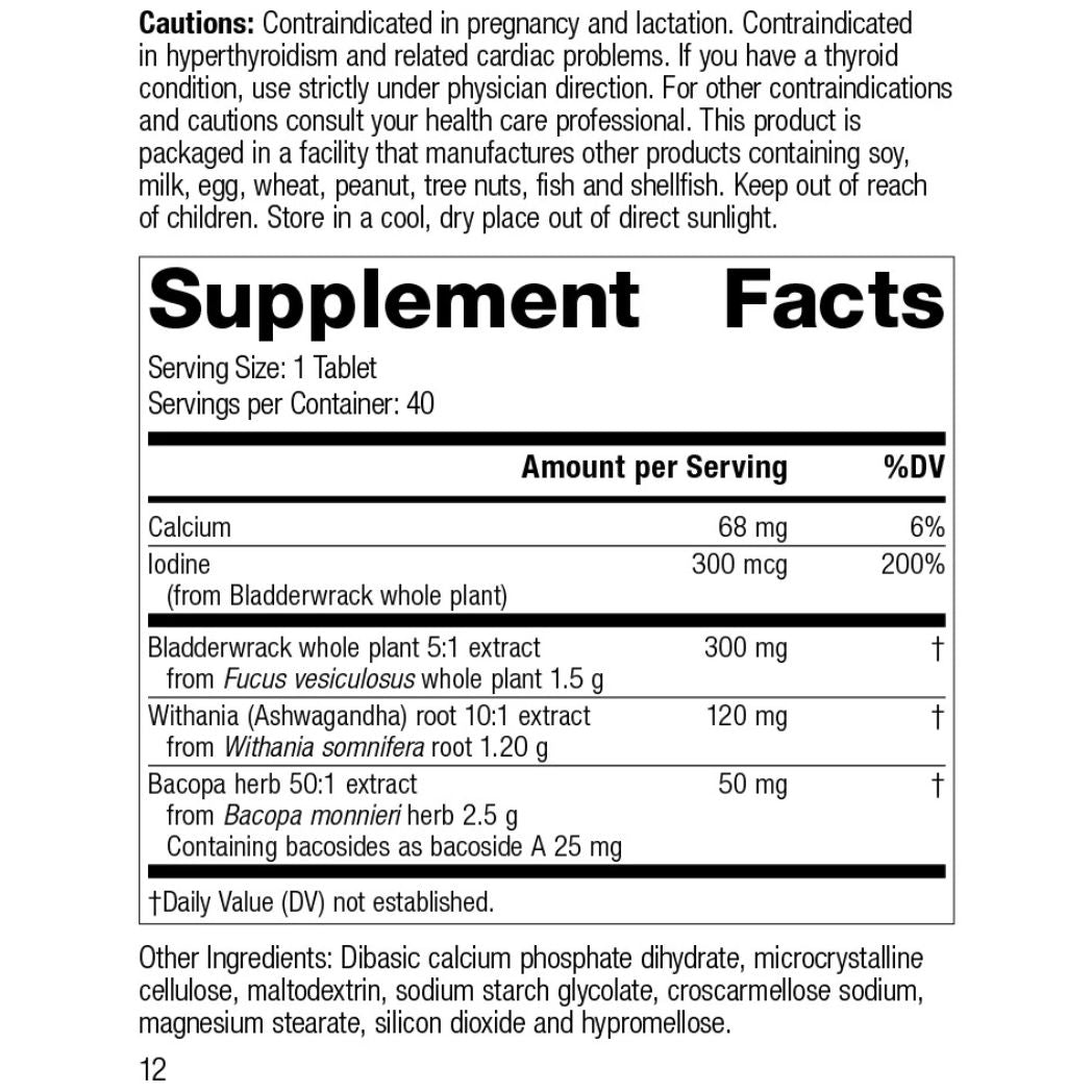Combining iodine-rich Bladderwrack with the adaptogenic power of Ashwagandha and brain-boosting Bacopa, this blend strengthens the body’s natural thyroid hormone production while supporting energy and cognitive function. The targeted formula helps maintain metabolism and stress response naturally.