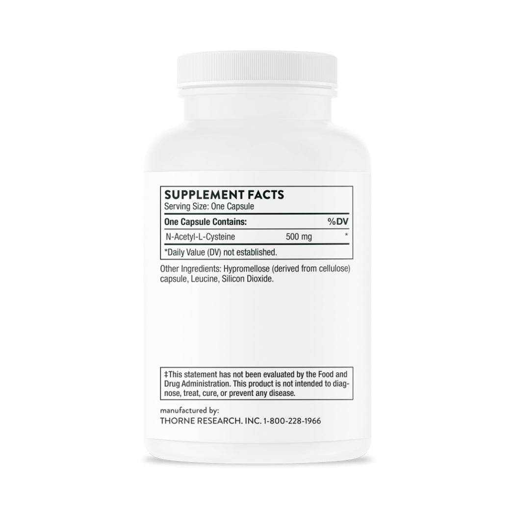 Thorne delivers 500 mg of pure N-Acetyl-L-Cysteine (NAC) per capsule to support respiratory health, immune response, and detoxification. This powerful antioxidant precursor promotes glutathione production, aiding in liver and kidney function for optimal cellular defense.
