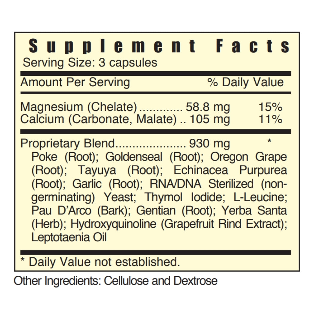 3 Bactrex is a comprehensive botanical formula crafted to support the body's natural relationship with its microbiome. Featuring a synergistic blend of herbs such as Goldenseal, Echinacea, Garlic, and Pau D’Arco, it promotes healthy cellular integrity and immune function. Its ingredients have been traditionally used to reinforce the body’s natural defenses and maintain microbial balance. Designed as part of the BioCommand system, Bactrex enhances the impact of companion formulas by targeting cellular support and improving nutrient assimilation.