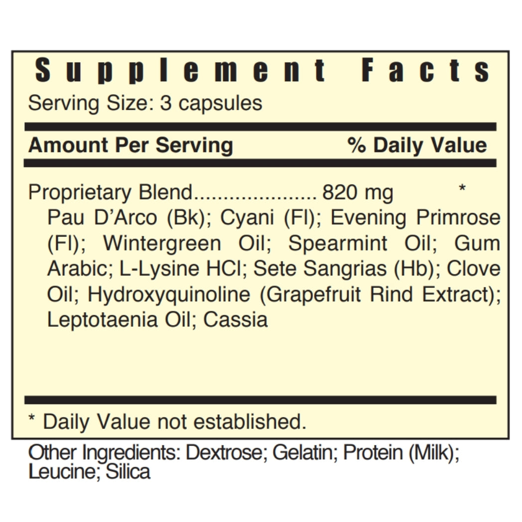 4 FungDx is a synergistic herbal formula designed to support the body's natural ability to maintain a balanced microbiome and mycobiome. By combining traditional botanicals like Pau D’Arco, Clove Oil, and Grapefruit Rind Extract with immune-supportive nutrients such as L-Lysine and Evening Primrose Oil, FungDx helps promote cellular harmony and gastrointestinal comfort. This formula enhances cellular metabolic processes and encourages the body’s natural immune response, supporting overall health from the inside out.