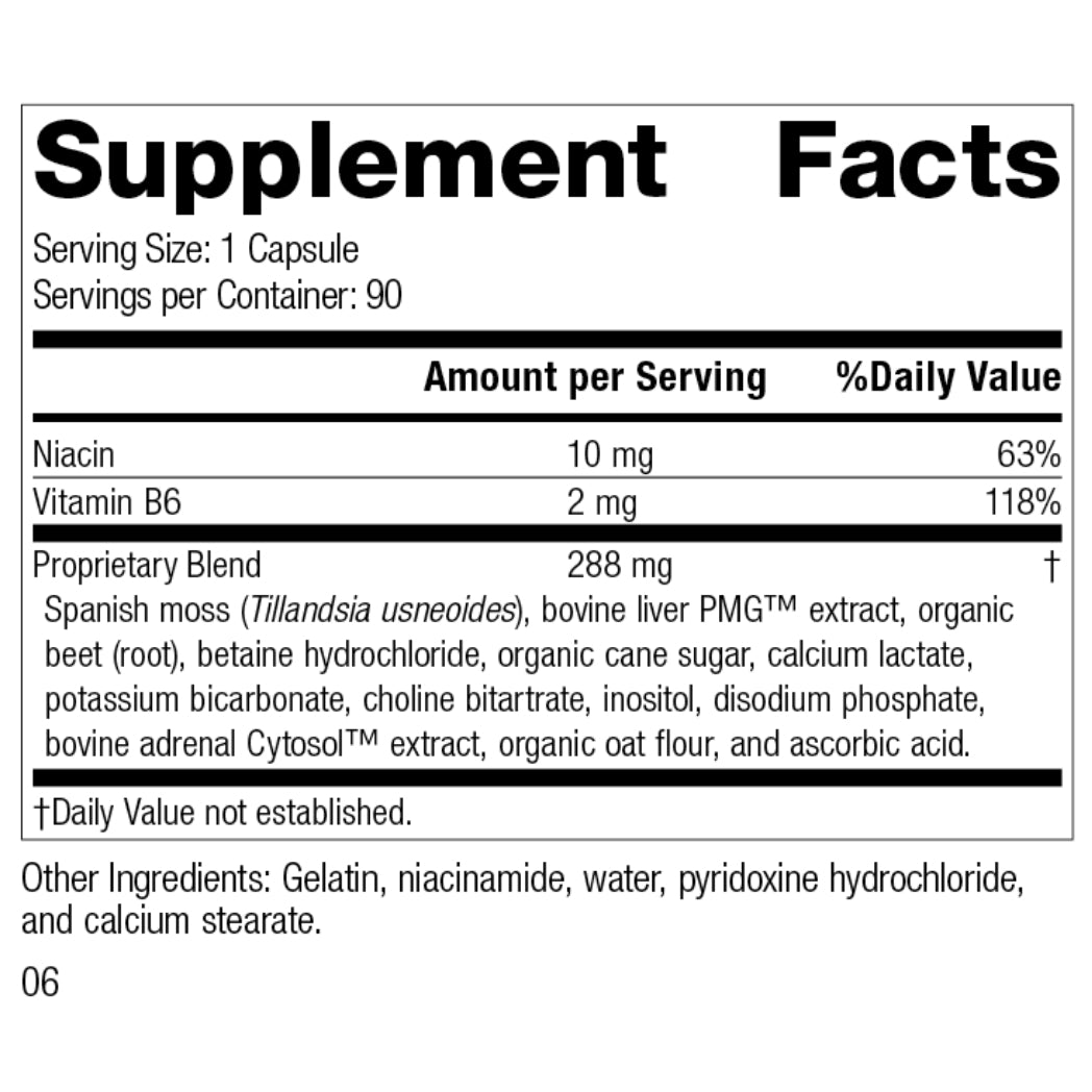 Betacol® combines targeted B vitamins with a proprietary blend that nurtures liver health at a cellular level using select organ extracts, botanicals, and nutrients. The inclusion of betaine supports methylation and liver detox functions, while ingredients like Spanish moss and bovine liver PMG™ extract bolster overall metabolic wellness.