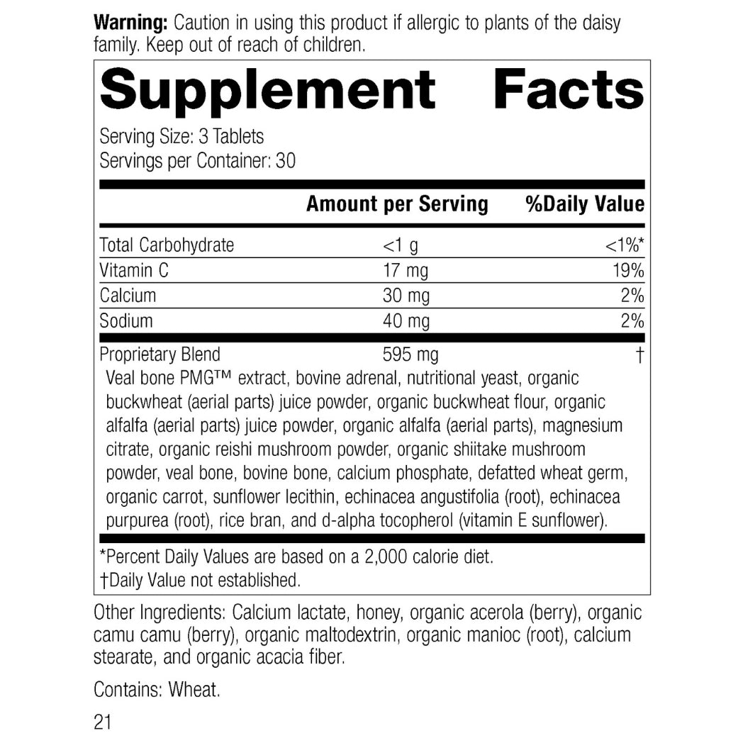Cataplex C blends vitamin C with a proprietary mix of nutrient-rich whole food ingredients and herbs, working together to enhance bioavailability and effectiveness. Its mix of alfalfa, echinacea, mushrooms, and glandular extracts helps the body naturally manage immune stress and oxidative damage.