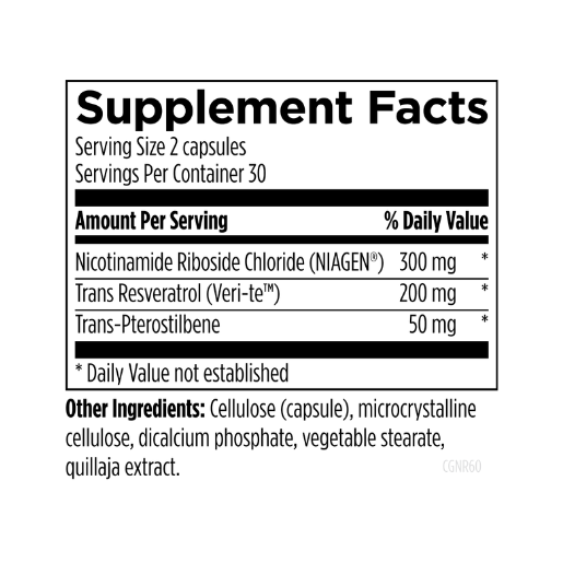 CellGuard-NR™ by Designs for Health is a powerful NAD+ boosting formula that supports cellular repair, mitochondrial health, and healthy aging. Featuring clinically researched levels of Nicotinamide Riboside (Niagen®), Trans-Resveratrol (Veri-te™), and Pterostilbene, it helps combat oxidative stress and energize cells at the core.