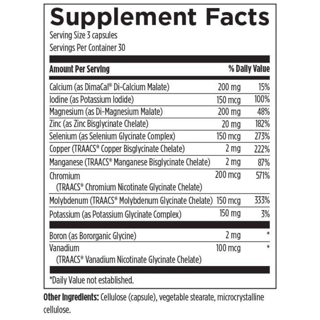 Complete Mineral Complex features chelated minerals using TRAACS® technology, ensuring superior bioavailability and gentler digestion. It's balanced formula supports enzymatic, hormonal, and physiological functions throughout the body.