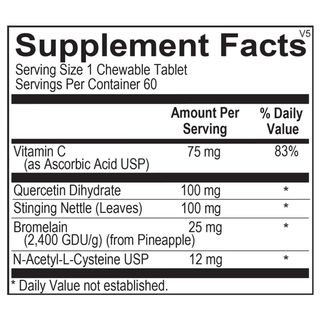 D-Hist Jr.™ combines scientifically backed ingredients like quercetin and bromelain with vitamin C and stinging nettle to modulate histamine responses and support healthy inflammatory balance. Its chewable tablet is formulated to be both effective and kid-friendly in taste and texture.