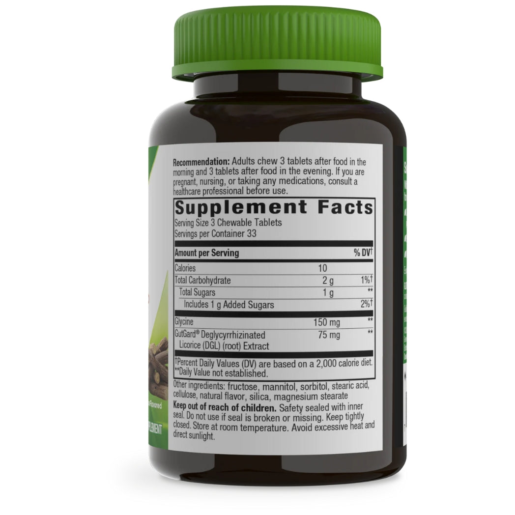 Nature’s Way® DGL (Deglycyrrhizinated Licorice) offers soothing digestive relief with a sugar-free chewable formula designed to support a healthy stomach lining. Blended with glycine and GutGard® licorice root extract, this daily supplement helps ease occasional heartburn and irritation without the unwanted effects of glycyrrhizin.