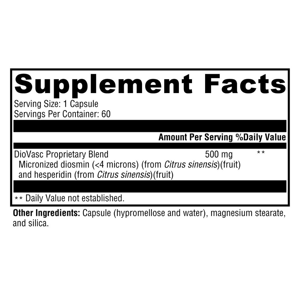 DioVasc® uses micronized diosmin and hesperidin—powerful citrus bioflavonoids—for superior absorption and effectiveness in promoting healthy blood flow and vein elasticity.