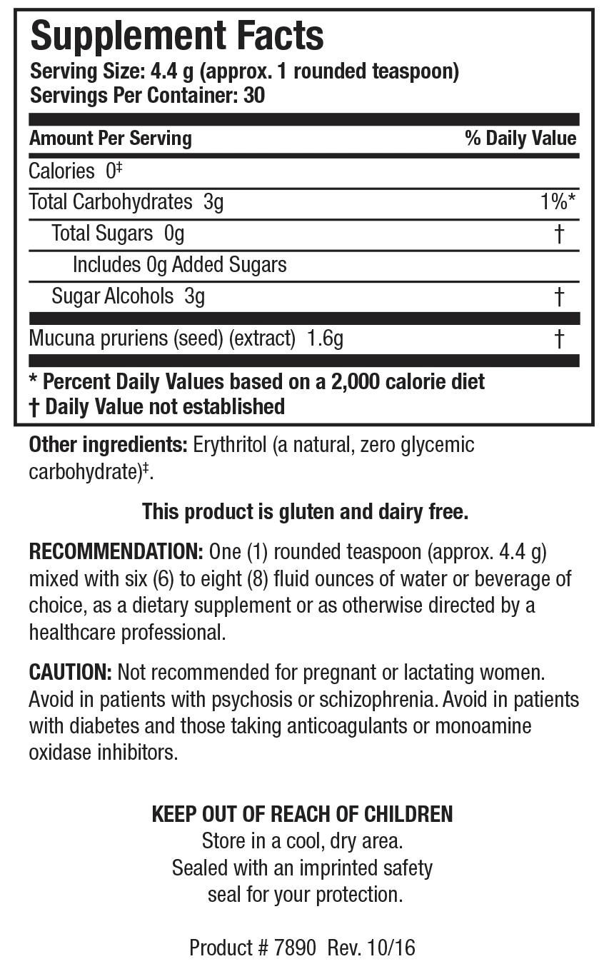 DopaTropic® Powder contains a naturally occurring source of L-Dopa from the seed of the Mucuna pruriens plant. Dopamine functions to trigger numerous nerve impulses that affect muscle movement. Dopamine is also largely responsible for regulating physical movement, and emotion, and also effects the pleasure and motivation centers of the brain. Dopamine also assists neuronal transmission between neurons in the brain. Thus, the less dopamine there is, the less communication there is between the cells in the substantia nigra (midbrain). This area of the brain plays an important role in reward, addiction, and movement.