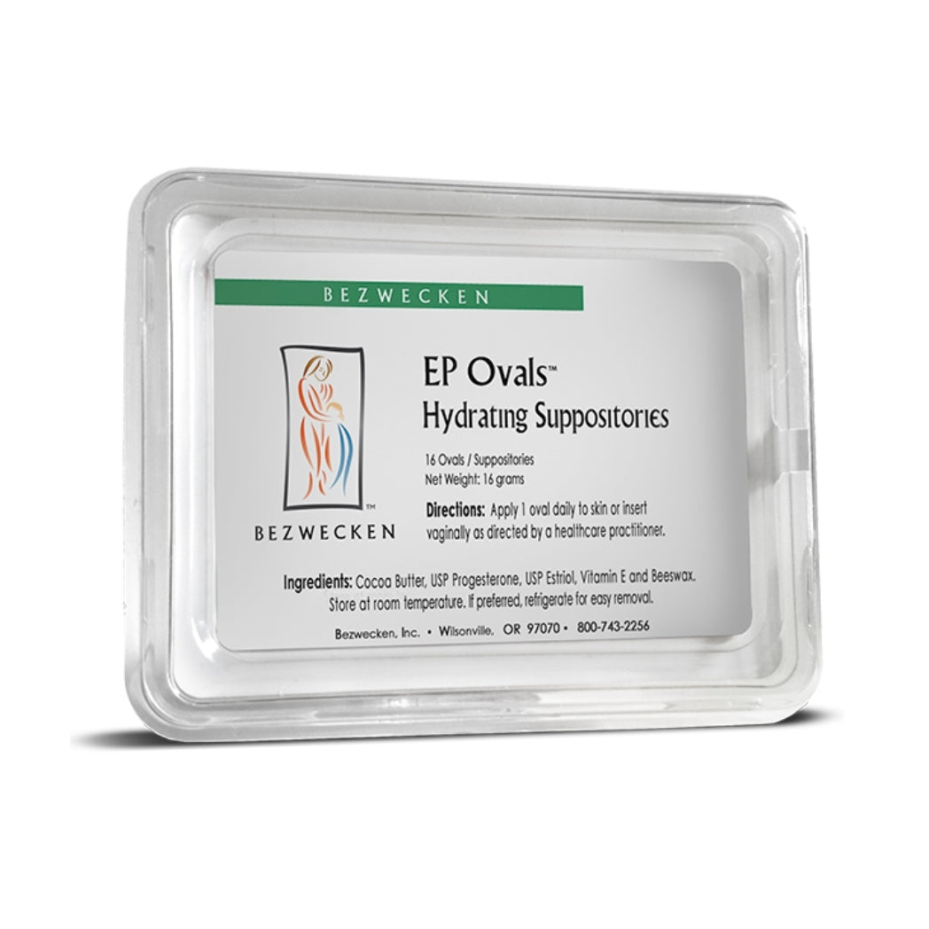 Bezwecken EP Ovals are professionally formulated vaginal suppositories designed to help relieve vaginal dryness commonly experienced during menopause. Each oval contains a gentle, balanced blend of estriol and progesterone combined with natural cocoa butter, providing both lubrication and hormone support.