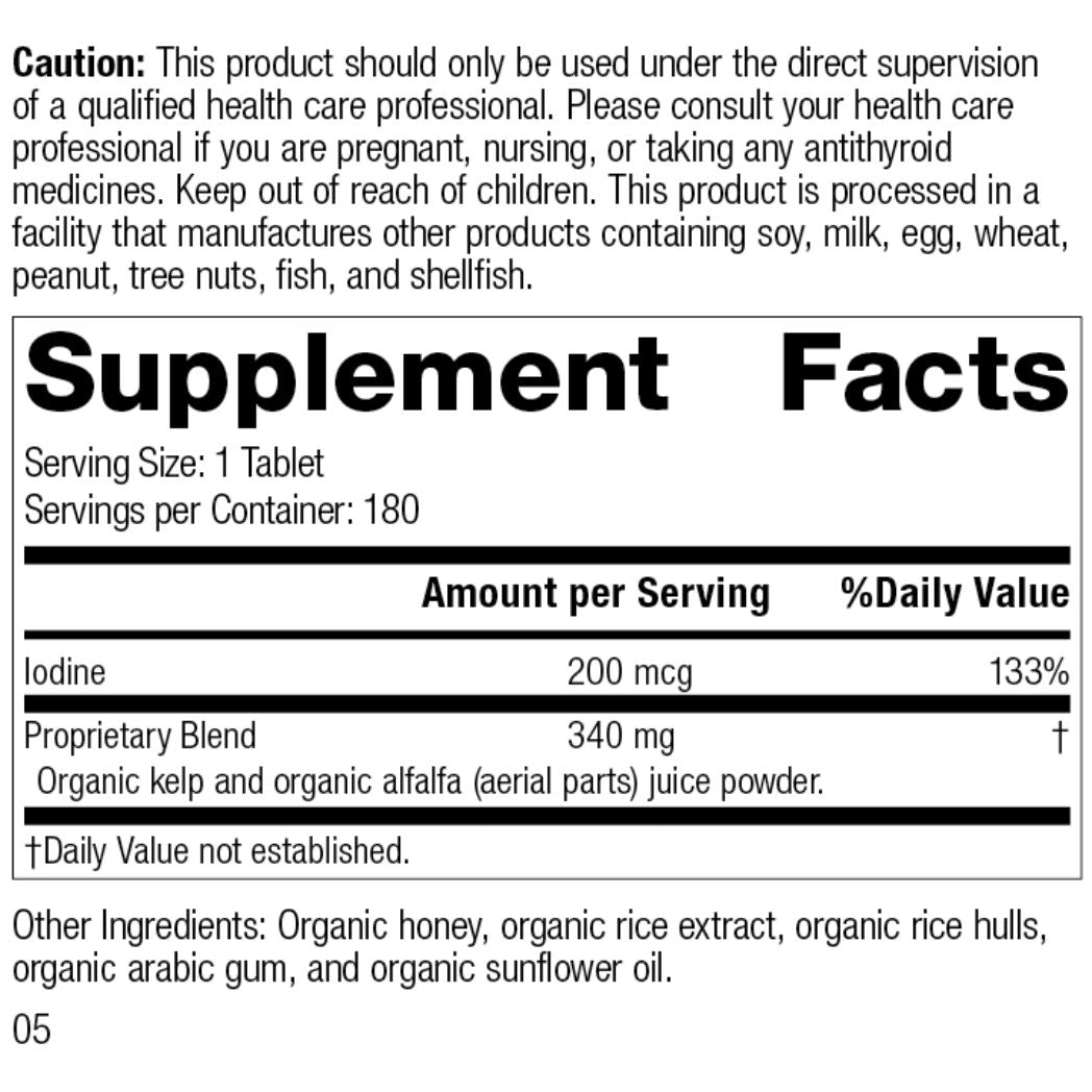 This formula blends organic kelp and alfalfa to provide naturally sourced iodine, a crucial element in thyroid hormone production and energy regulation, while supporting structural and neurological health.