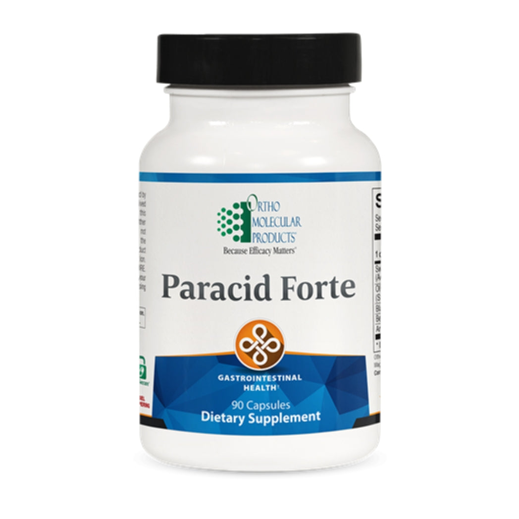 Paracid Forte by Ortho Molecular Products is a professional-grade supplement formulated to support healthy microbial balance in the gastrointestinal tract. With a potent blend of botanicals like Sweet Wormwood, Olive Leaf Extract, and Black Walnut Hulls, it works synergistically to promote gut health and immune resilience.